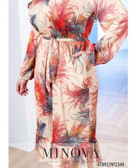 58-60 р-р: довжина сукні 125см, довжина рукава від плечового шва 60см, обхват рукава 44см, ОГ - 120см, ОТ -122см, OC -132см.