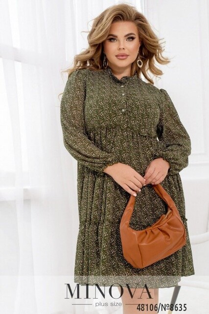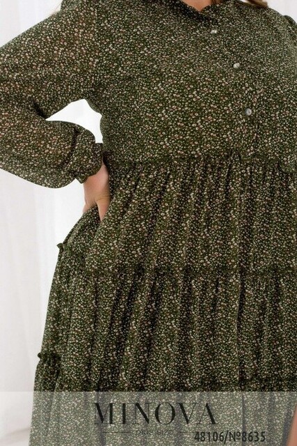 Неможливо уявити собі більш жіночний наряд, ніж ніжна і легка сукня, що виконана з невагомої шифонової тканини і складається з декількох шарів воланів. Такій сукні дорогі прикраси не потрібні - вона сама і є прикрасою. Модель доповнена м'якою трикотажною підкладкою, рукавами довжиною 3/4 з вшитими в манжети резинками і невеликим коміром-стійкою. Сукня застібається на ряд гудзиків, розташованих спереду на планці.