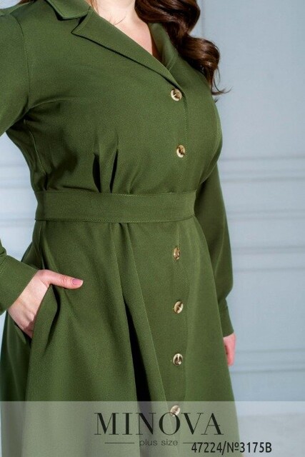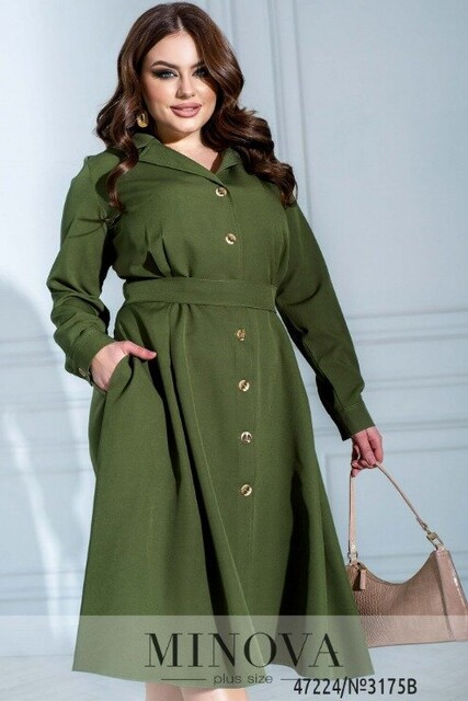 Стильна монохромна сукня-сорочка є унікальною і універсальною річчю, адже вона підходить всім, незалежно від фігури і віку. Відрізна по талії модель доповнена англійським коміром і зручними кишенями в бічних швах, вона ідеально сідає по фігурі завдяки двом стандартним складкам, розташованим спереду і спрямованим від талії вгору, а також зустрічним складкам, розташованим спереду і ззаду і спрямованим від талії вниз. Сукня застібається на ряд гудзиків спереду.