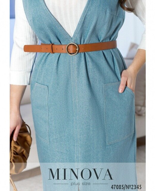 Витончений джинсовий сарафан міді - неординарна річ, що поєднує жіночність і стиль casual. Ця модель подарує вам комфорт і додасть впевненості у своїй привабливості. Сарафан доповнений зручними накладними кишенями і шліцею спереду.