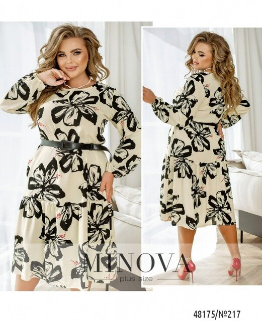 54-56 р-р: довжина сукні 123см, довжина рукава від плечового шва 61см, обхват рукава 42см, ОГ - 118см, ОТ -118см, OC -130см.