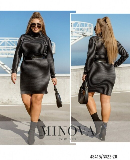 М'яка сукня міні, яка виготовлена з приємної трикотажної тканини. Сукня доповнена високою горловиною, а рукава виділені манжетом. Підкреслити лінію талії ви можете за допомогою текстильного пояска, який йде в комплекті. Елегантну сукню ви можете доповнити довгим пальто та чобітками.