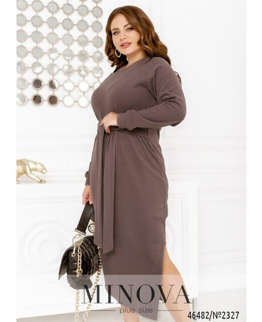 Мінімалістична жіночна сукня, виконана з м'якої ангорової тканини, здатна надати силуету вашої фігури м'якості і природності. Модель прямого силуету доповнена довгими рукавами "реглан" з манжетами, а також фігурним вирізом збоку внизу і трохи асиметричним низом, подовженим спереду. Родзинкою цієї сукні є текстильний пояс, вшитий в бокові шви, за допомогою якого ви можете змінювати свій образ, зав'язуючи його спереду або ззаду.