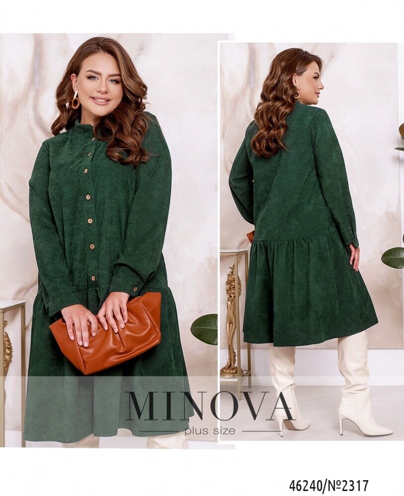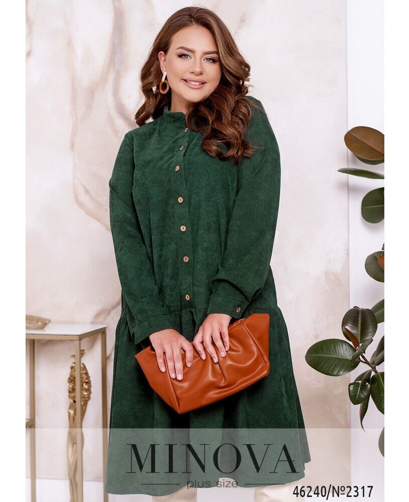 Це жіночна сукня, виконана з м'якої вельветової тканини, зробить ваш образ стильним, модним і вишуканим. Модель доповнена коміром-стійкою, довгими рукавами з манжетами і повітряним грайливим воланчиком, підшитим до подолу. Сукня застібається на ряд гудзиків спереду по центру.
