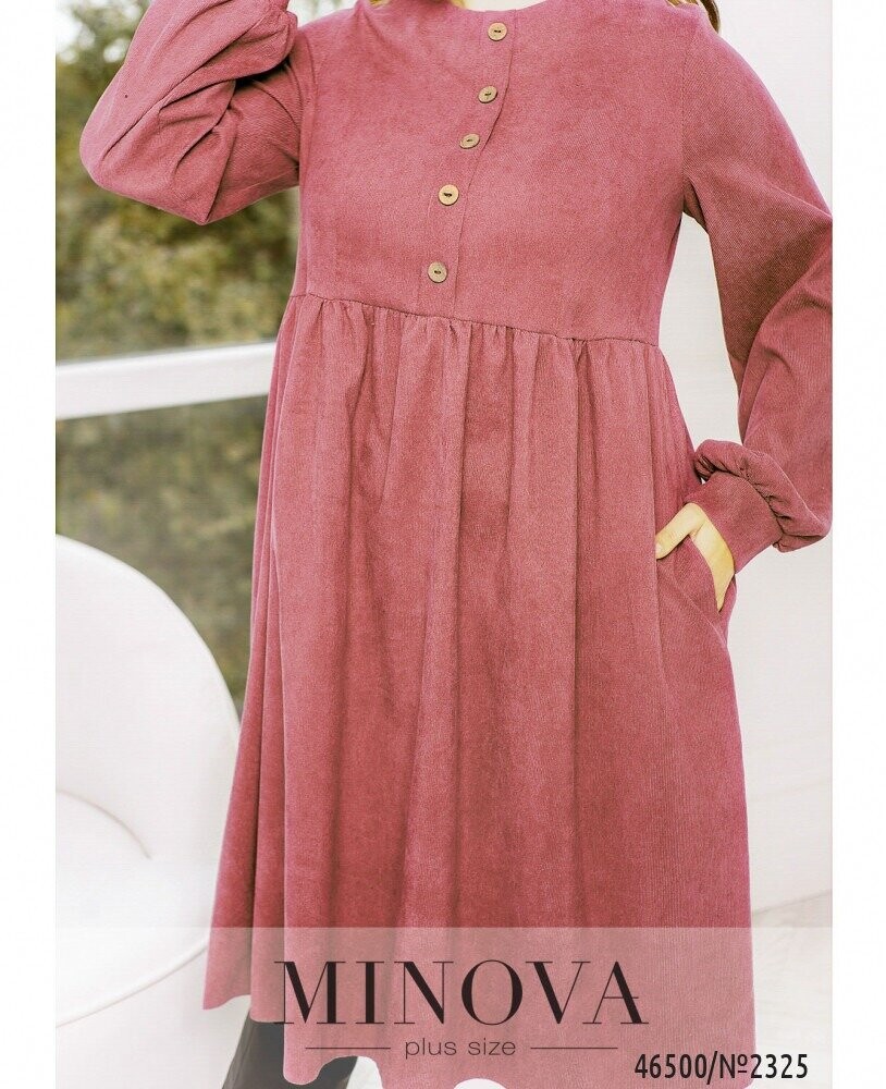 Яскрава жіночна сукня міді, виконана з текстурної вельветової тканини, внесе в образ трішки кокетства, романтизму і жіночності. Модель із завищеною талією доповнена декоративними гудзиками на планці і довгими рукавами з манжетами.