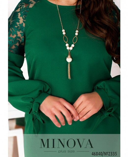 Витончена жіночна сукня стане універсальним рішенням як для зустрічі з друзями, так і для вечірки, роблячи ваш образ стильним, модним і вишуканим. Родзинкою цієї моделі є вставки з ніжного мережива на плечах і довгі рукава з манжетами на зав'язках.