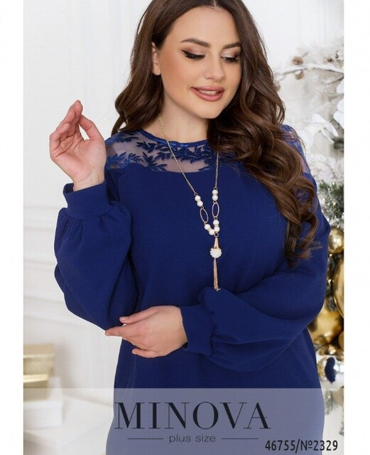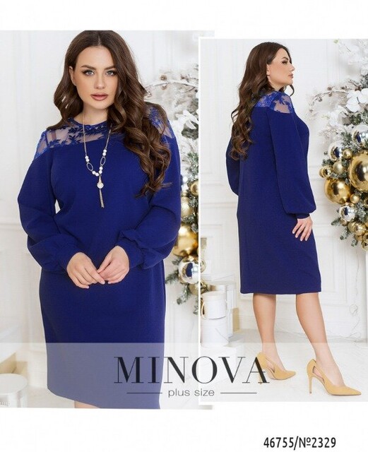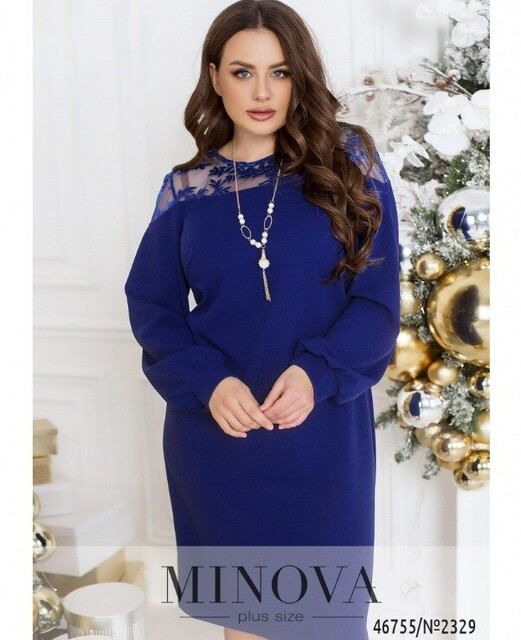 Витончена жіночна сукня з вставкою і тонкого мережива на плечах – універсальне рішення для будь-якої модниці. У ньому цілком можна з'явитися як в офісі, так і на корпоративі або святі. Модель без застібок і кишень доповнена довгими рукавами з манжетами і нагрудними витачками, що забезпечують ідеальну посадку на грудях.