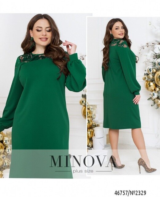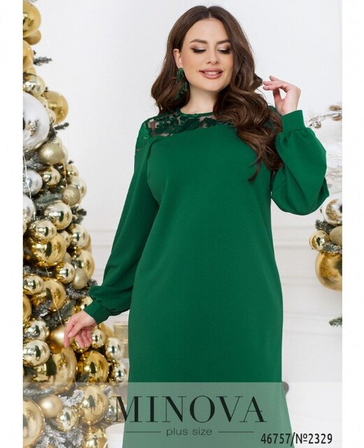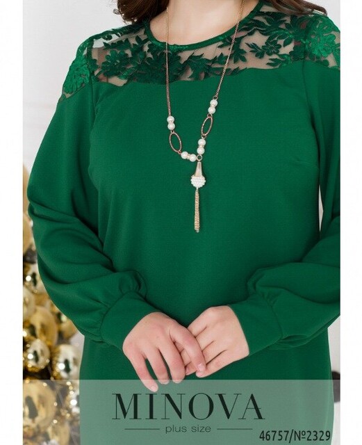 Витончена жіночна сукня з вставкою і тонкого мережива на плечах – універсальне рішення для будь-якої модниці. У ньому цілком можна з'явитися як в офісі, так і на корпоративі або святі. Модель без застібок і кишень доповнена довгими рукавами з манжетами і нагрудними витачками, що забезпечують ідеальну посадку на грудях.