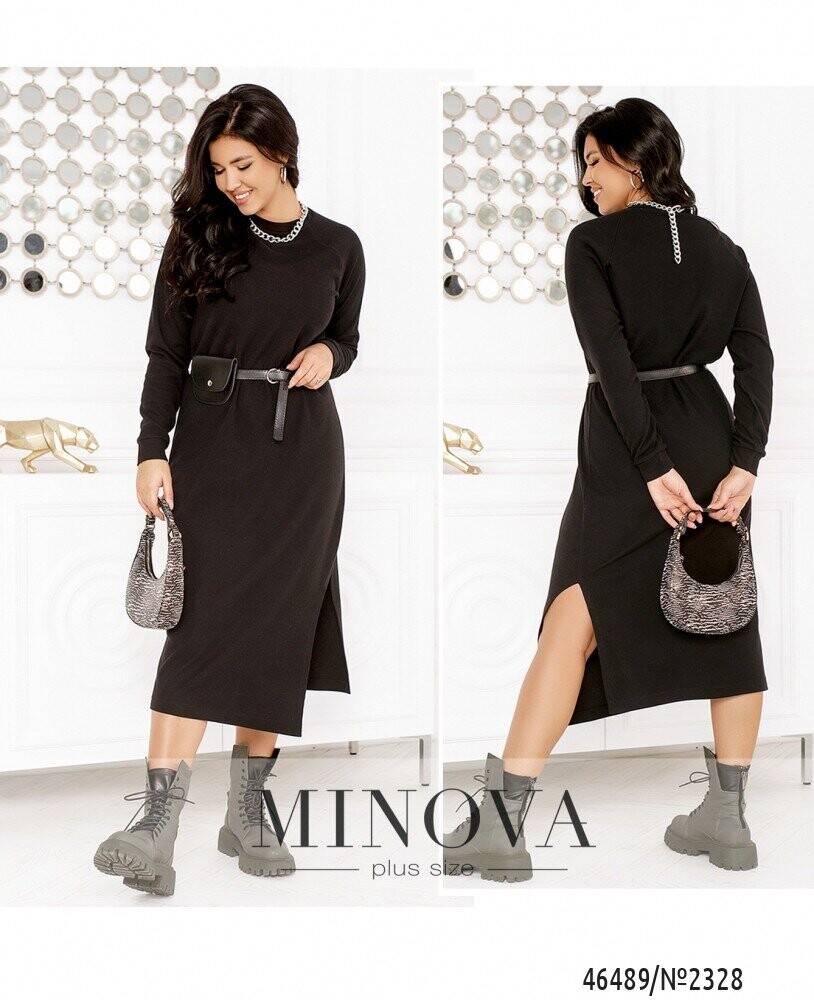 Стильна сукня, виконана з м'якої ангорової тканини, відрізняється універсальністю, а також вдало вписуються в будь-який стиль. Модель лаконічного прямого силуету доповнена довгими рукавами "реглан" з манжетами, а також фігурним вирізом збоку внизу і злегка асиметричним низом, подовженим спереду.