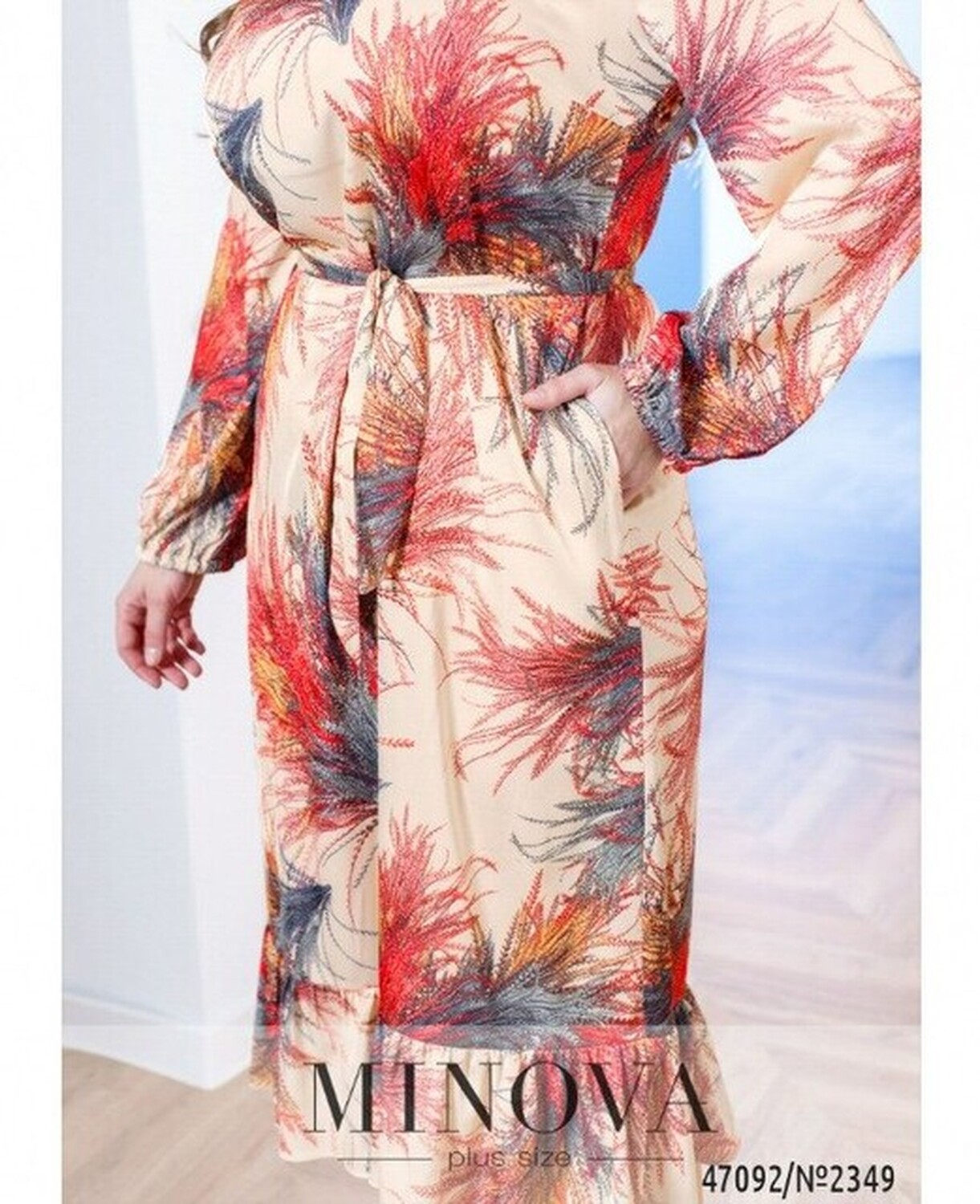 54-56 р-р: длина платья 123см, длина рукава от плечевого шва 59см, обхват рукава 40см, ОГ - 112см, ОТ -114см, ОБ -124см.