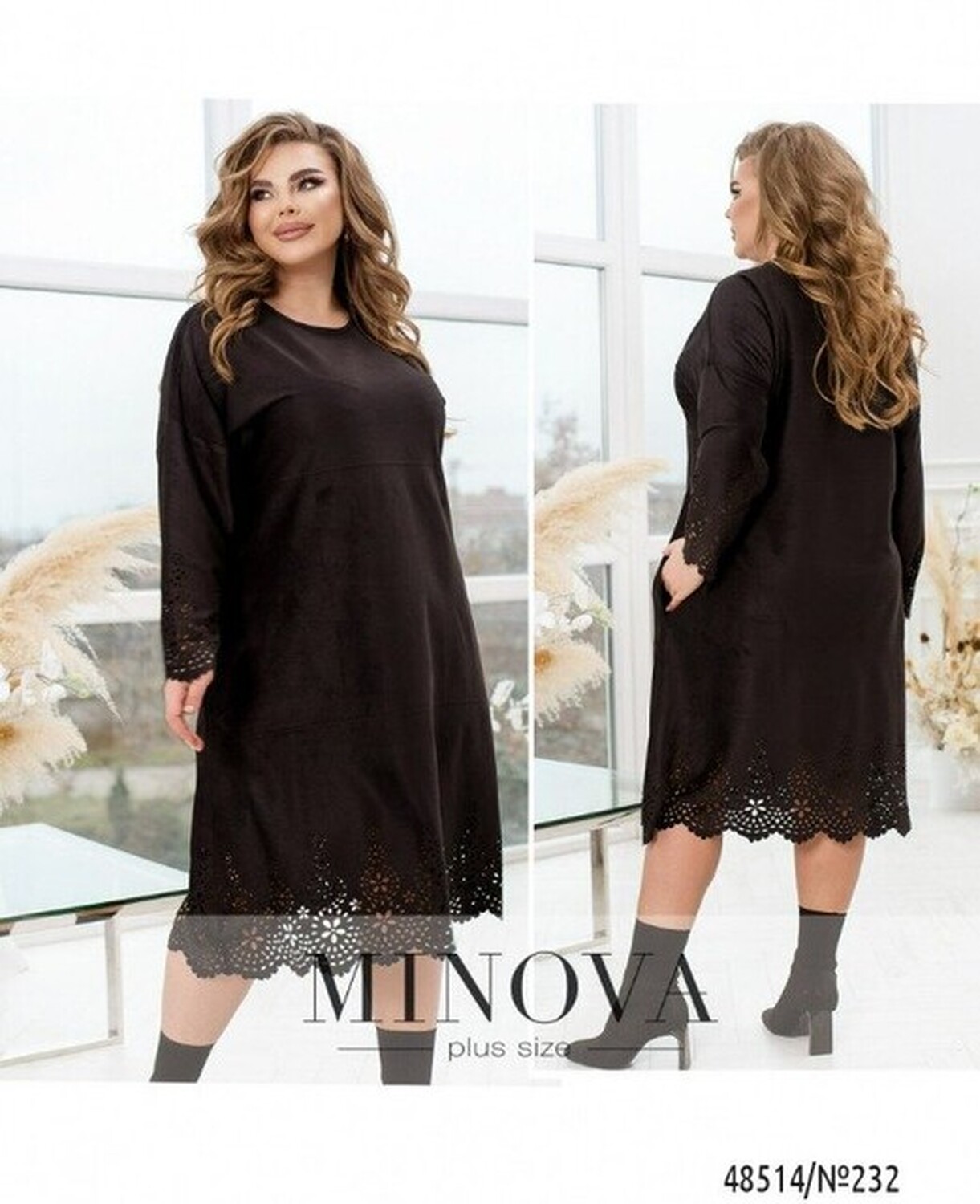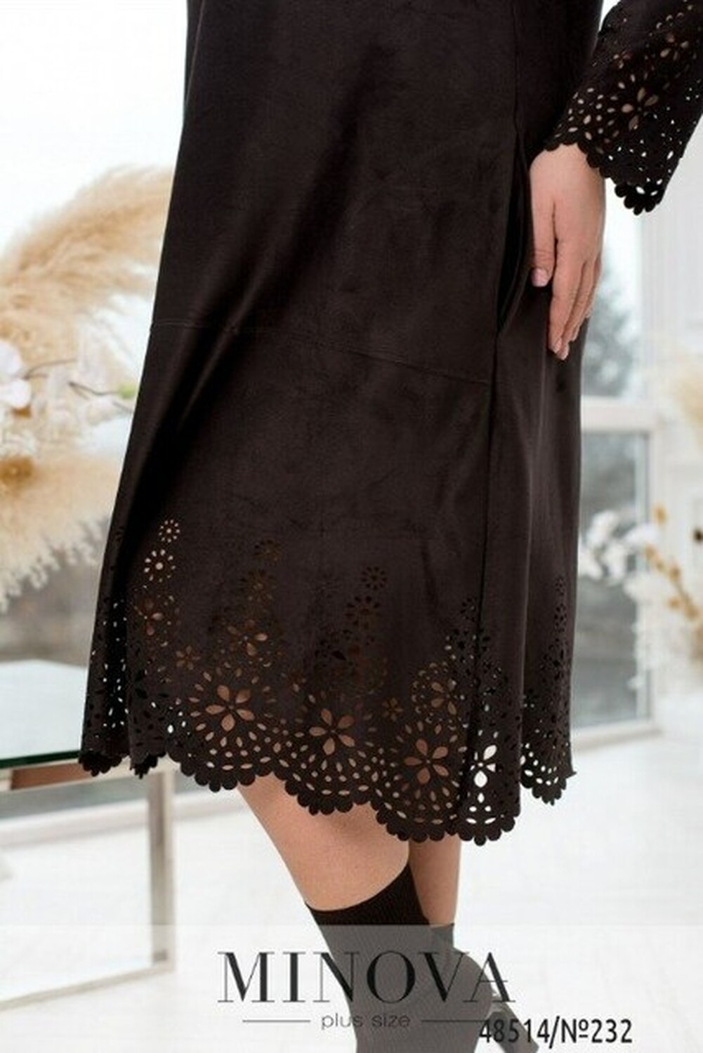 Нежное платье из мягкой и приятной на ощупь замши, которая идеально подойдет как для повседневных образов, так и образов для вечеринки. Платье оверсайз покроя с боковыми карманами. Украшением платья является кружево, изготовленное с помощью лазерной гравировки, которое размещено на подоле платья, а также на рукавах. Обратите внимание, что платье по переду состоит из нескольких частей, прошитых горизонтальным швом, которые образуют отрезную линию груди и выделяют нижнюю часть изделия.