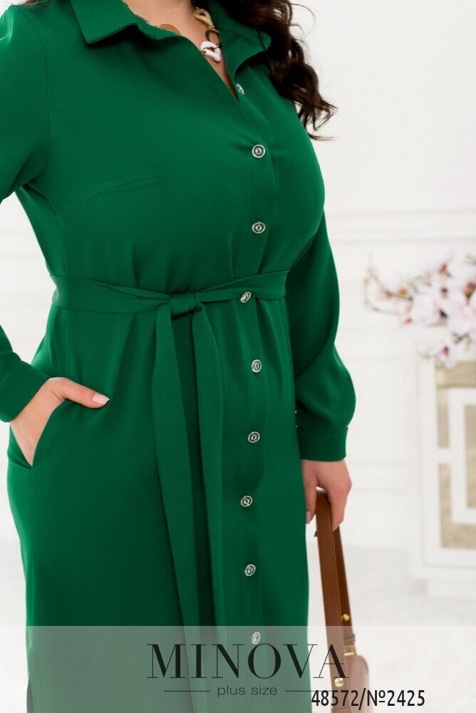 Універсальна сукня рубашка в монохромних відтінках. Сукня з відкладним коміром, яка застібається на ряд гудзиків на передній планці. Рукави з манжетами, на манжетах по одному гудзику. З боків подола – розрізи та округлі краї. Сукня доповнена бічними кишенями та поясом, яким можна підкреслити лінію талії.