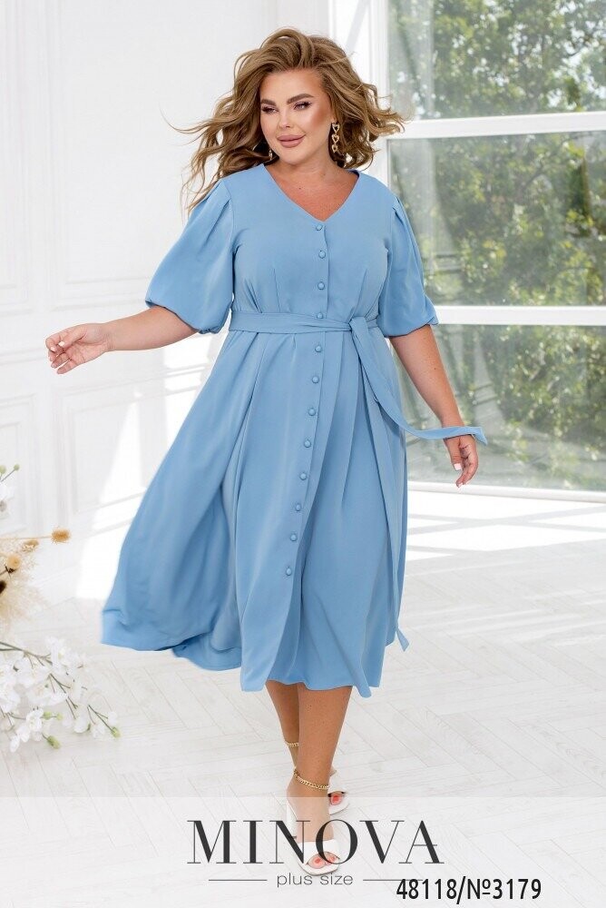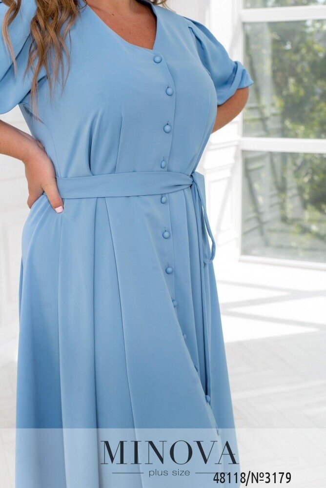 Легка й повітряна сукня А-силуету з приємної на дотик тканини. Виріз V-форми - від якого розташовуються ґудзики по всій довжині. Сукня з відрізною талією та поясом в тон, який йде в комплекті. Від талії є вертикальні лінії, які роблять силует більш витонченим. Повітряні рукава довжини 3/4 на резинці роблять образ ще більш легким. Чудовий варіант для святкової вечері чи прогулянок з подругами.