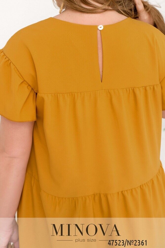 Легка невагома сукня, що складається з декількох шарів повітряних воланів – універсальне рішення для будь-якої модниці. У ньому можна як сходити на шопінг або прогулянку, так і з'явитися на літній вечірці або в ресторані. Модель доповнена витонченими рукавами-крильцями і непомітними кишенями в бічних швах. Сукня застібається на маленький гудзик під шиєю.