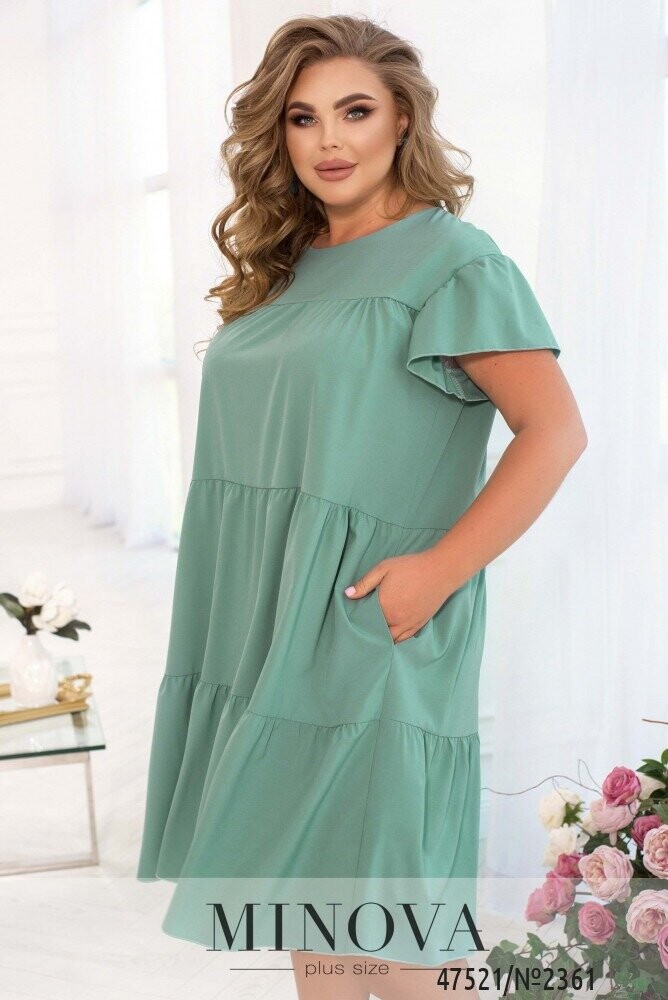 Легка невагома сукня, що складається з декількох шарів повітряних воланів – універсальне рішення для будь-якої модниці. У ньому можна як сходити на шопінг або прогулянку, так і з'явитися на літній вечірці або в ресторані. Модель доповнена витонченими рукавами-крильцями і непомітними кишенями в бічних швах. Сукня застібається на маленький гудзик під шиєю.