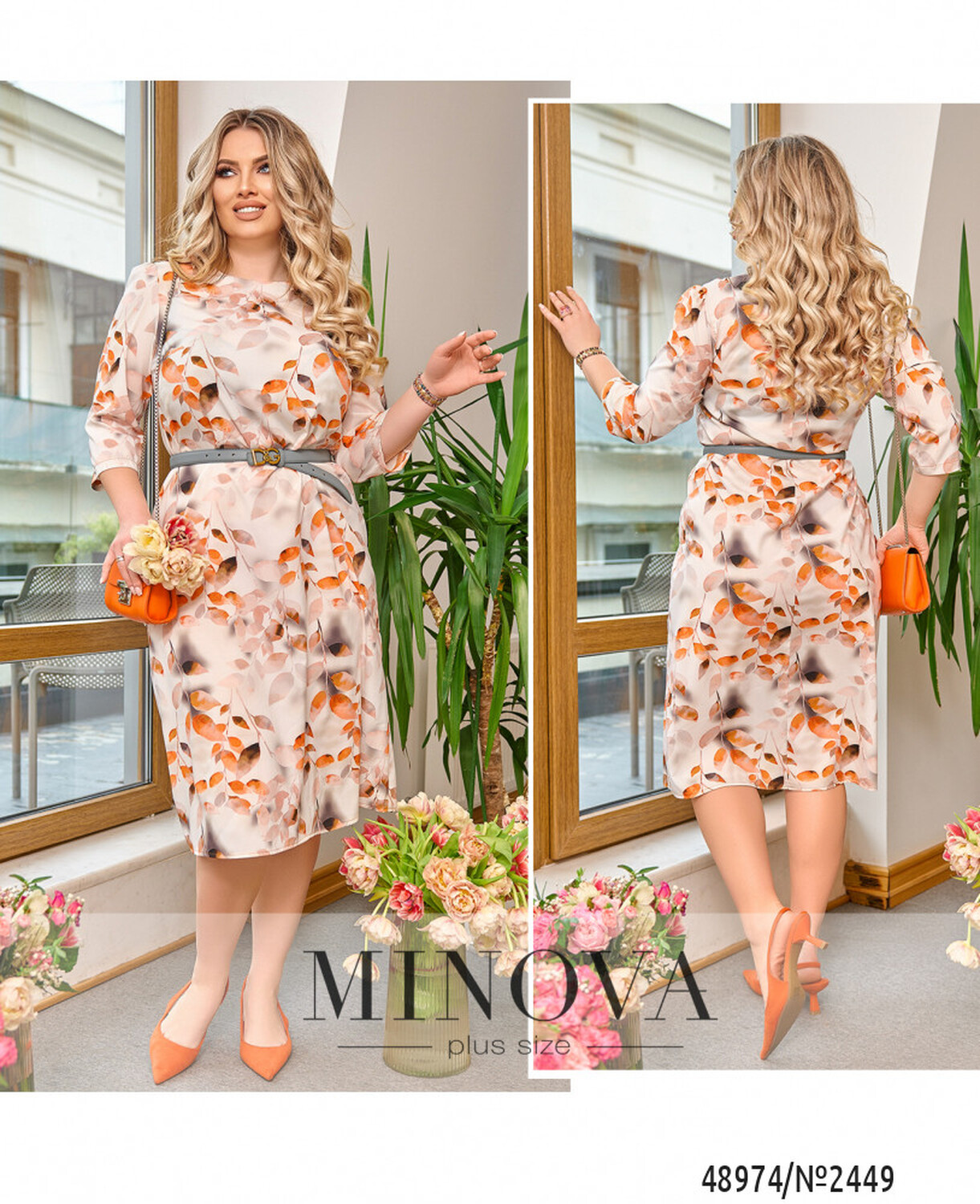 Сукня №2449-білий-помаранчевий