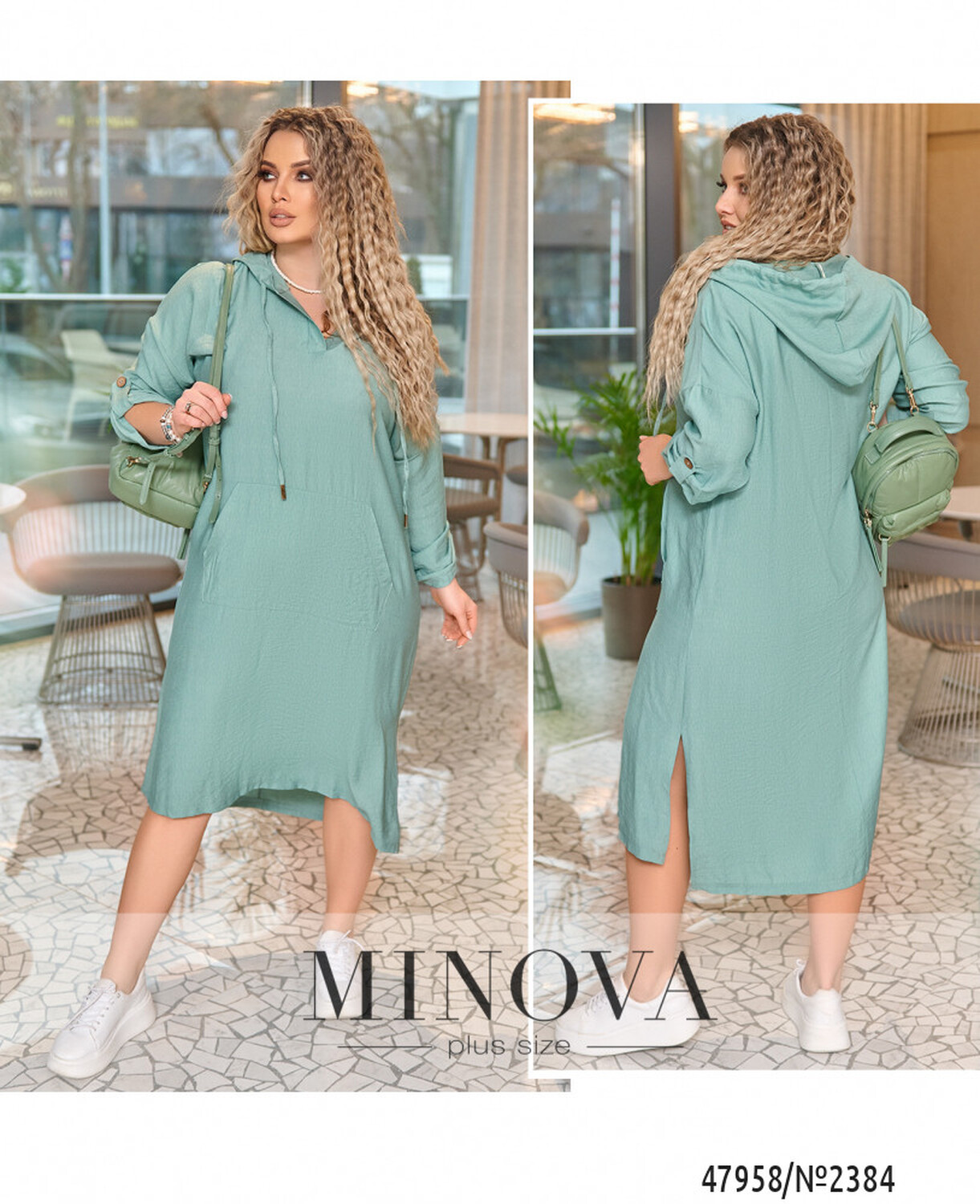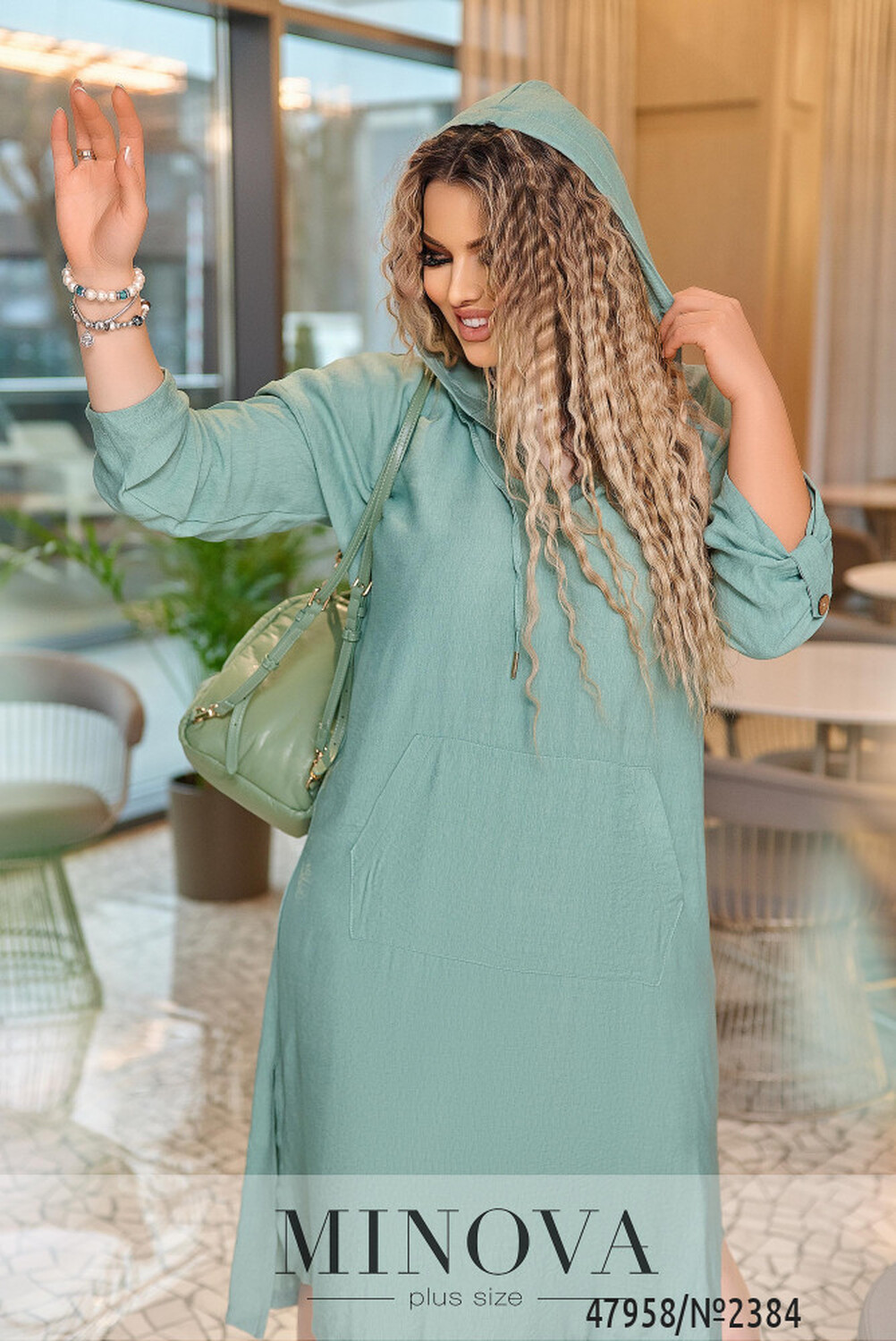 Сучасна та стильна сукня спортивного крою довжини максі зі спущеними плечима. Сукня вільного крою в стилі оверсайз з довгим рукавом, який доповнений не функціональною шлейкою на ґудзику. Ми зробили не великий виріз горловини V-форми, який переходить в капюшон . Дизайнери додали велику функціональну кишеню на передню частину сукні. Сукня подовжена по спинці, а по боковій частині подолу ми зробили розрізи які додають повітряності образу.