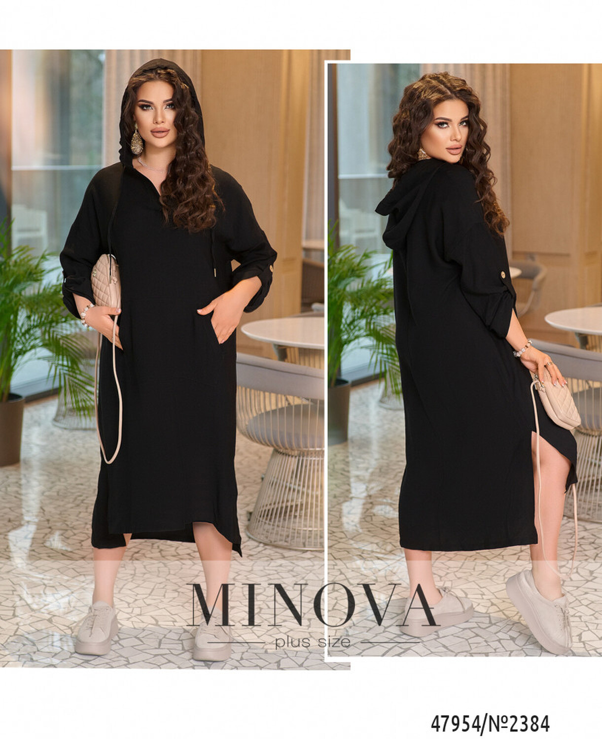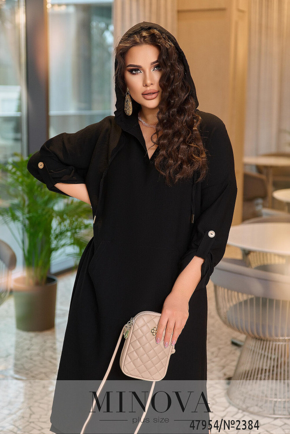 Сучасна та стильна сукня спортивного крою довжини максі зі спущеними плечима. Сукня вільного крою в стилі оверсайз з довгим рукавом, який доповнений не функціональною шлейкою на ґудзику. Ми зробили не великий виріз горловини V-форми, який переходить в капюшон . Дизайнери додали велику функціональну кишеню на передню частину сукні. Сукня подовжена по спинці, а по боковій частині подолу ми зробили розрізи які додають повітряності образу.