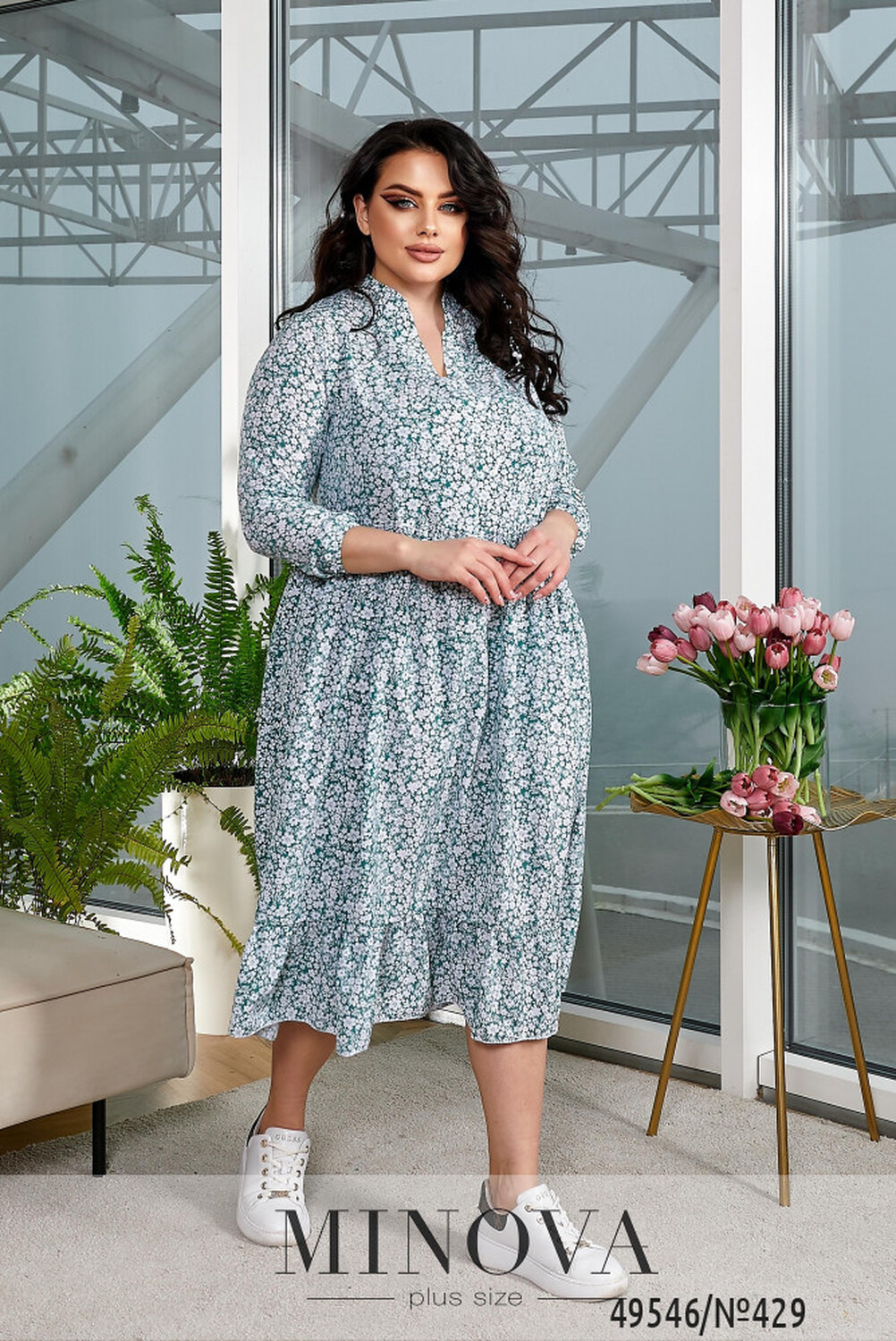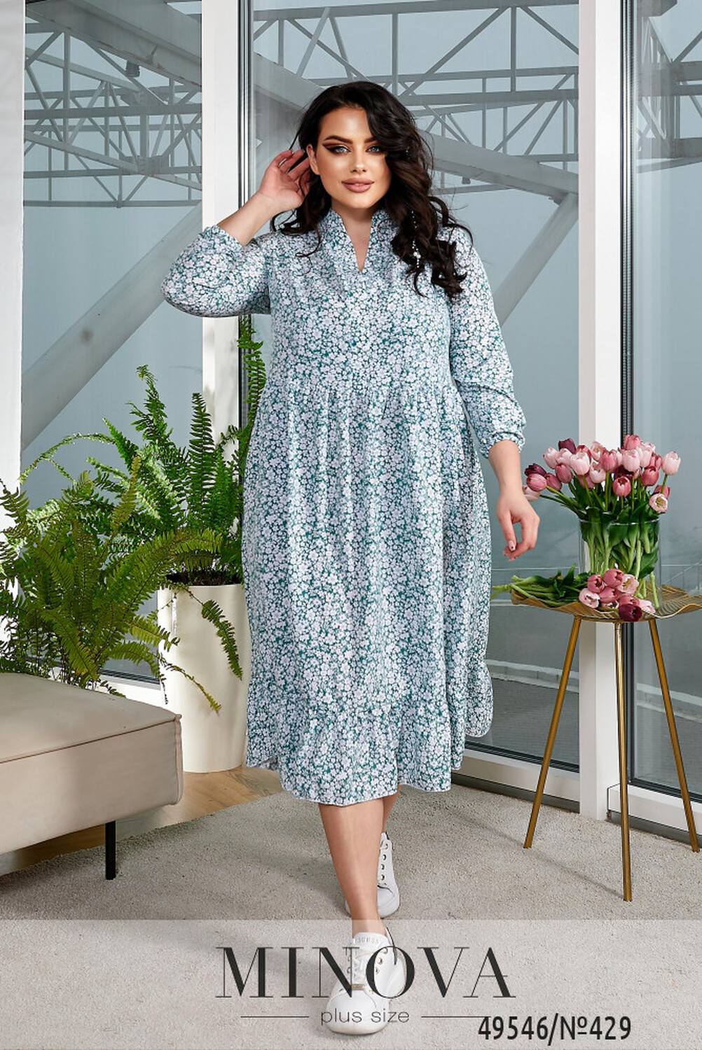 Приголомшлива сукня, що обов'язково стане неперевершеною окрасою вашого гардеробу. Її м'яка V-подібна горловина підкреслить вашу жіночність. Рукава сукні, що закінчуються на рівні 7/8, мають приталений крій.. Ліф сукні виконаний у відрізному стилі, а два рівні волани, що плавно спадають з нього, нададуть сукні об'єму та грації. Вона ідеально підійде для романтичних прогулянок, під підбори чи на низькому ходу.