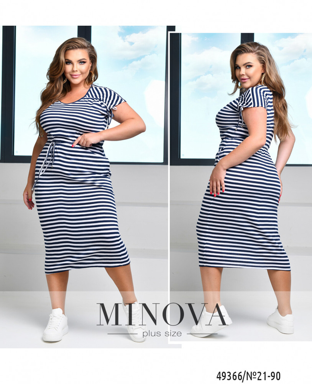 Ця проста та стильна сукня прямого силуету прикрасить будь-яку жіночну фігуру. Горизонтальна смужка надає вбранню стильний та цікавий вигляд. В комплекті до сукні йде пояс, який дозволяє підкреслити талію та корегувати фігуру в залежності від вашого бажання. Рукав без манжетів від якого йде вшита функціональна гумка-куліска до горловини, яку при бажанні можна розпрямити, що додає виробу цікавого фасону. А по боках є кокетливі розрізи, які привідкриють ніжки. Комбінуйте сукню з кросівками чи з босоніжками на низькому ходу.