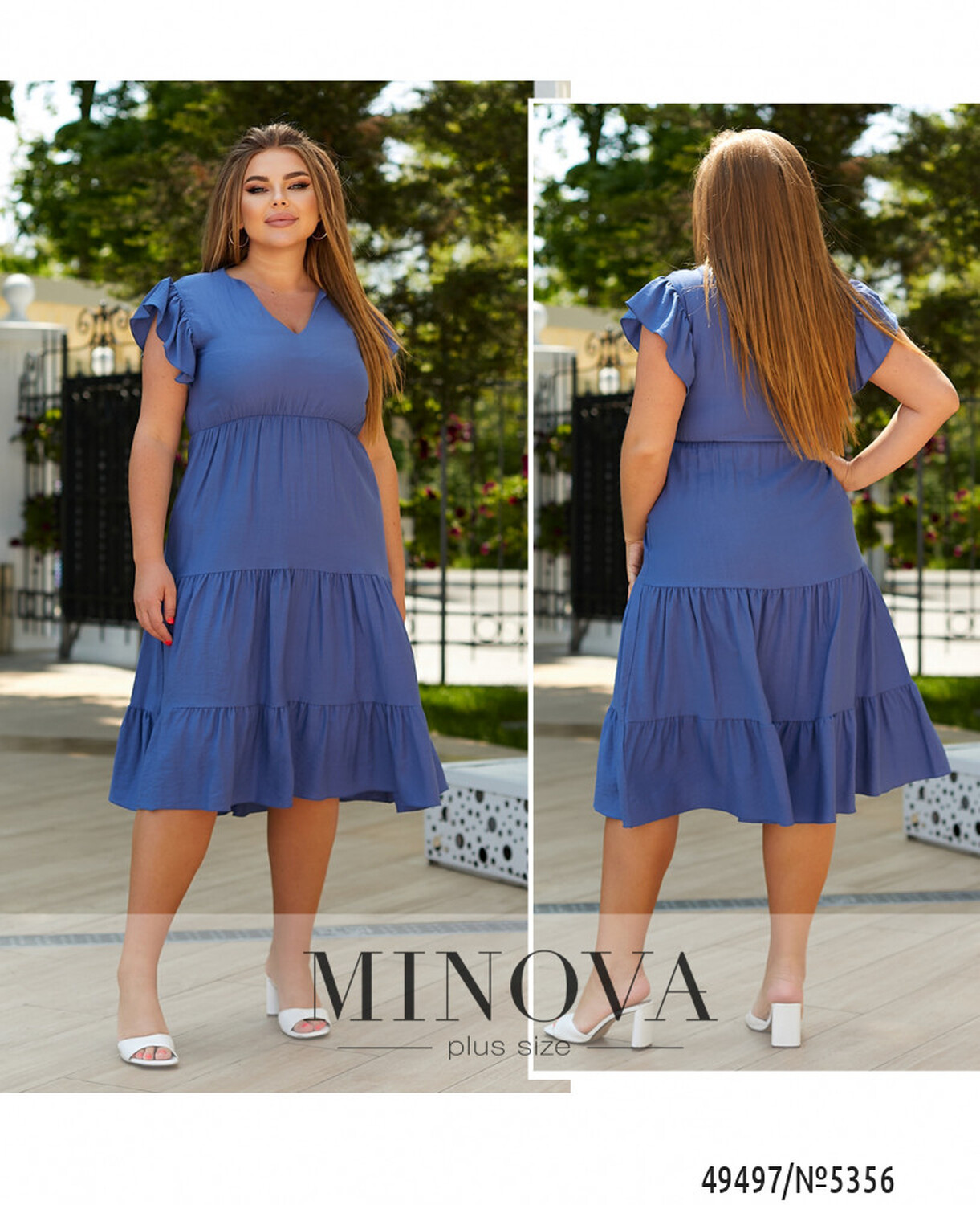 Горловина сукні має елегантну V-форму, яка прекрасно підкреслить вашу лінію декольте, додаючи жіночності та шарму. Рукава сукні оформлені у вигляді ніжних воланів, створюючи легкий та граціозний образ. Ліф сукні відрізний, від ліфа плавно спадають три ряди воланів, які надають сукні об'єму. Ця сукня створена з метою надати вам почуття комфорту та впевненості в будь-якій ситуації.