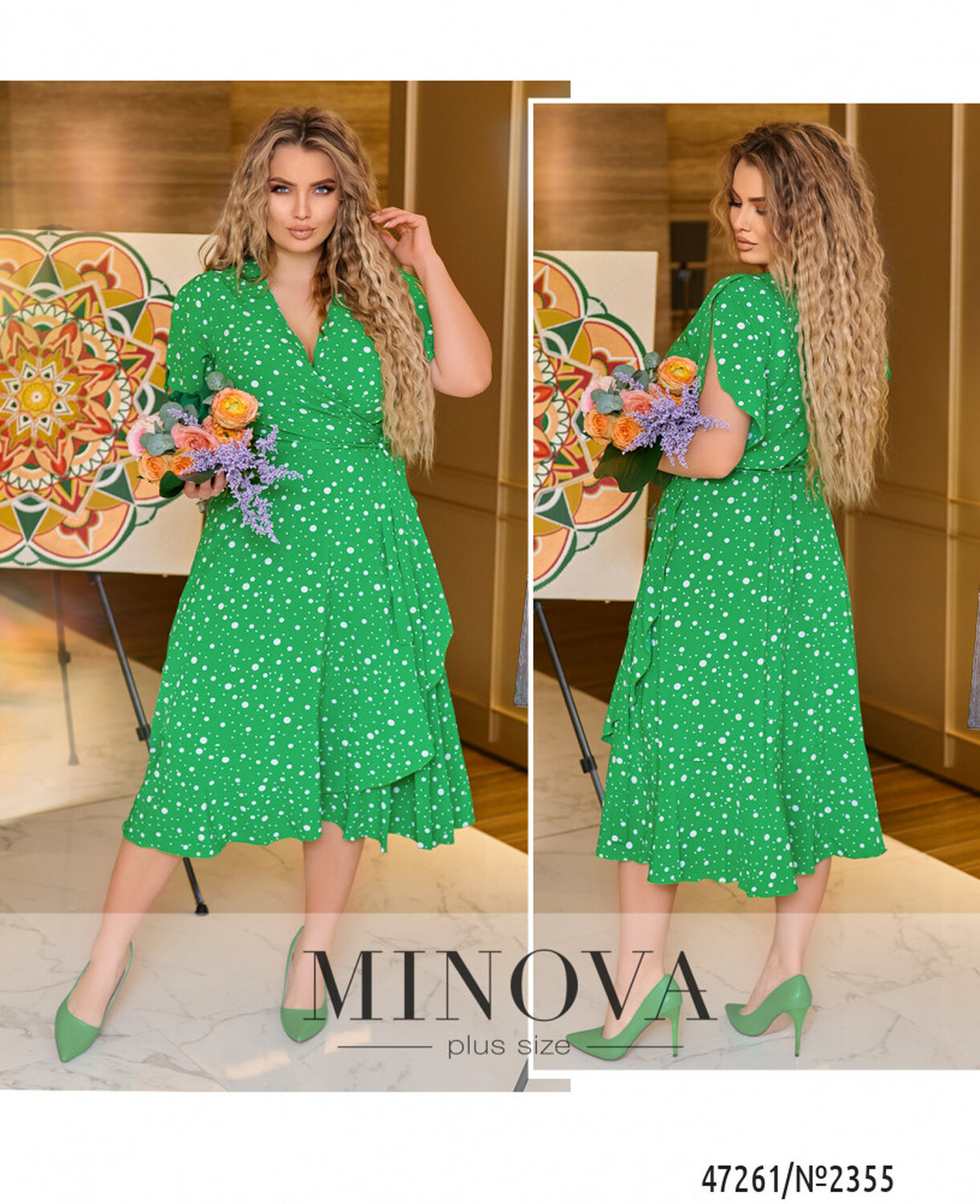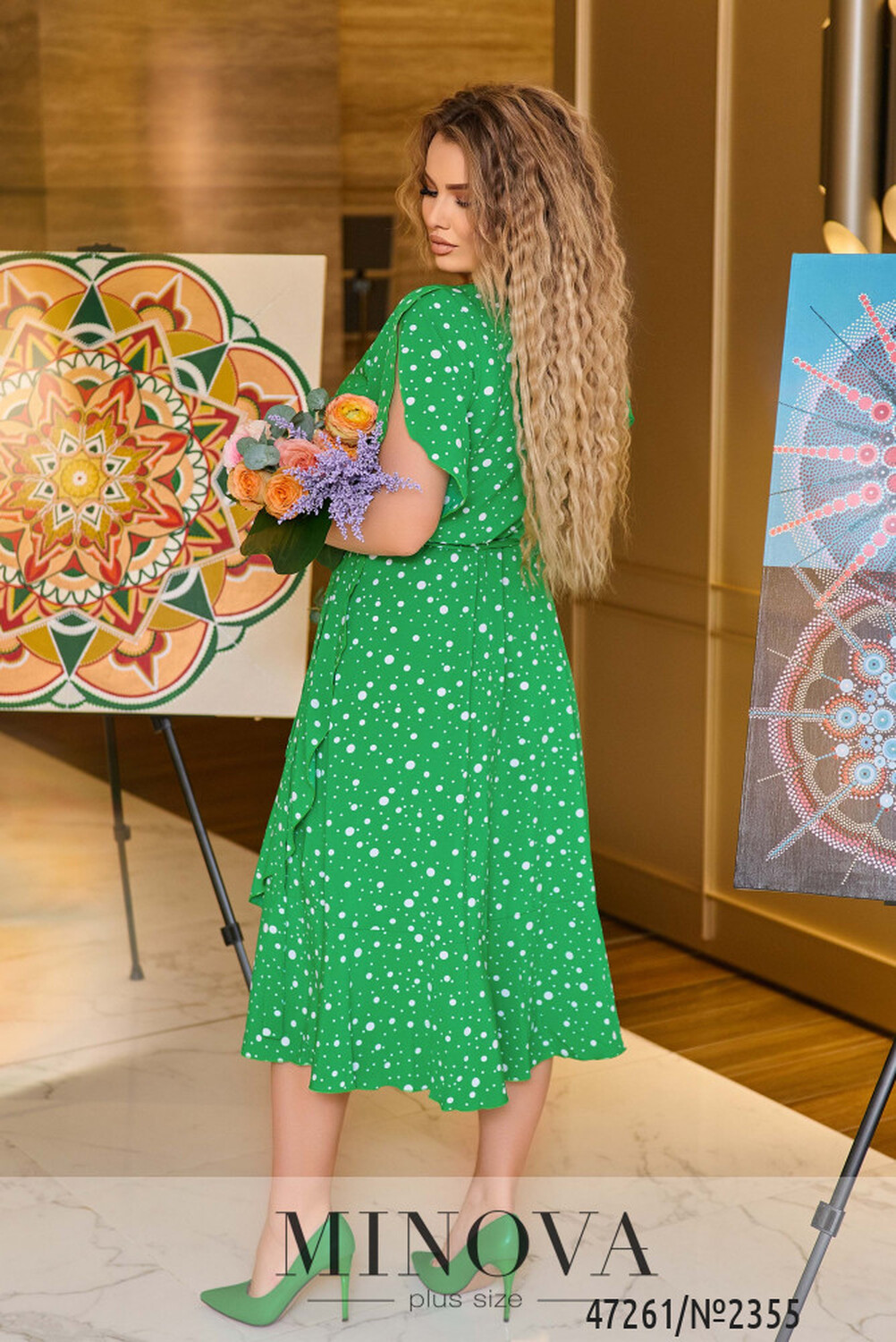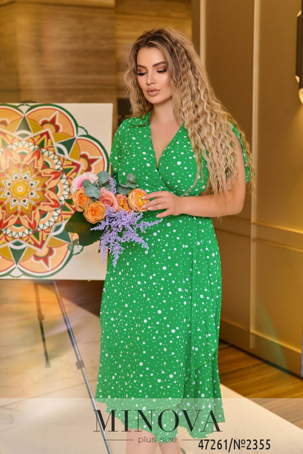 Яскрава жіночна сукня, підшита на запАх, додасть відчуття свіжості і легкості в ваш образ. Модель доповнена невагомими рукавами-крильцями, що розкриваються, і повітряної оборкою, підшитою по краю подолу. Сукня зав'язується на вшитий пояс, що протягується через отвір в бічному шві.