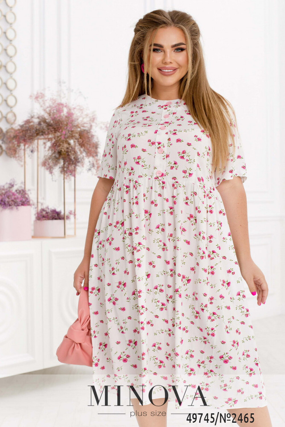 Ця ніжна сукня зроблена зі штапелю та прикрашена квітковим принтом, створюючи чарівний образ для літньої прогулянки. Модель сукні має завищену талію, що додає жіночності та підкреслює фігуру. Вона також прикрашена декоративними ґудзиками на планці, що додає додаткового акценту і стилізованого шарму до сукні. Сукня має короткі рукави. Від відрізної лінії талії сукня спадає вниз з високим воланом, який створює ефект драпування.