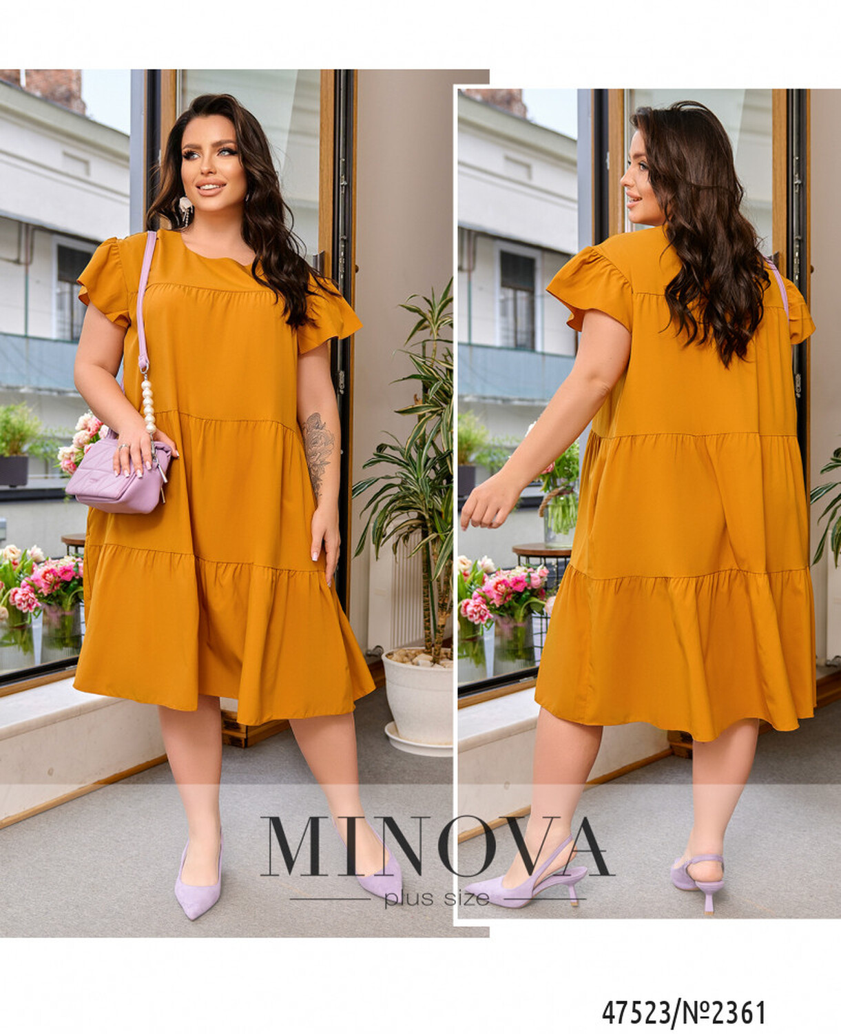 Легка невагома сукня, що складається з декількох шарів повітряних воланів – універсальне рішення для будь-якої модниці. У ньому можна як сходити на шопінг або прогулянку, так і з'явитися на літній вечірці або в ресторані. Модель доповнена витонченими рукавами-крильцями і непомітними кишенями в бічних швах. Сукня застібається на маленький гудзик під шиєю.