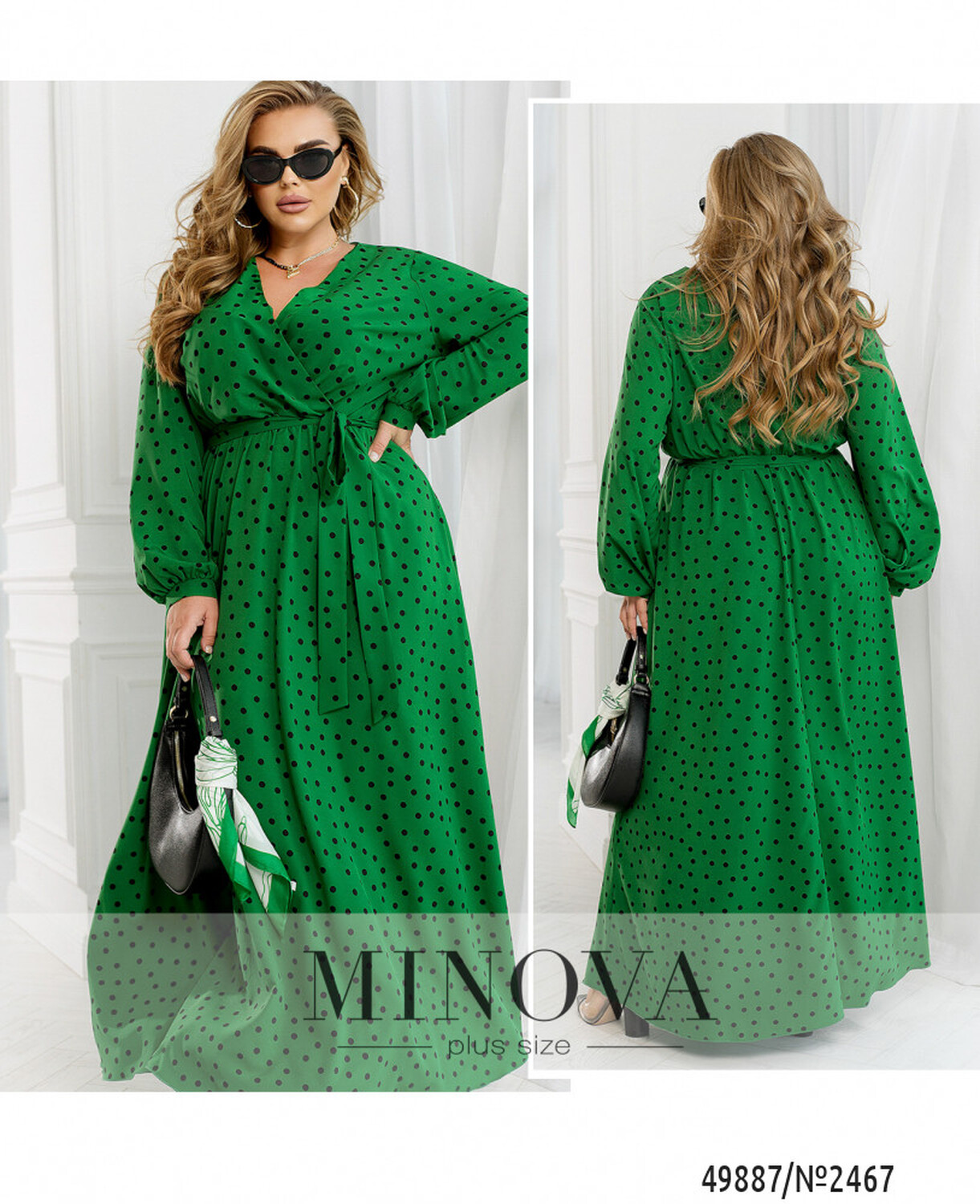 46-48 р-р: довжина сукні 145см, довжина рукава від плечового шва 62см, обхват рукава 36см, ОГ - 92/104см, ОТ -68см, OC -132см.
