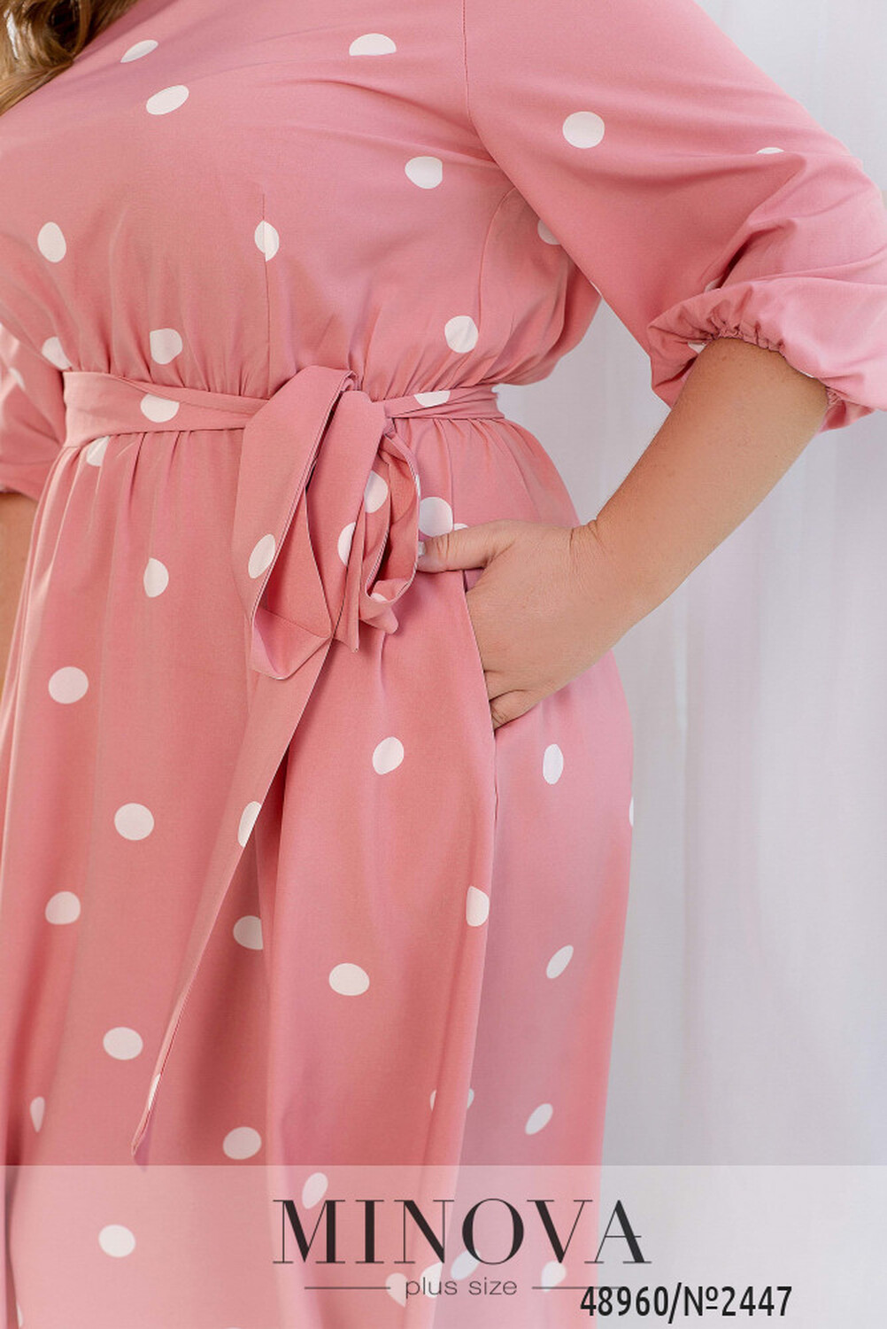 Ця жіночна сукня міді має незвичайний дизайн, який поєднує в собі елементи стилю 80-х та сучасні модні тенденції. Романтичність образу підтримує контрастний гороховий принт, що додає жіночності та легкості. Ця сукня може стати чудовим вибором для весняного або літнього образу, коли важливо виглядати свіжо та яскраво. Дизайн сукні також дозволяє легко поєднувати її з різними аксесуарами та взуттям, щоб створити унікальний образ для будь-якої події. Сукня має рукава довжиною 7/8, які доповнені гумкою, що забезпечує зручність під час руху та додає оригінальності в цілому образу. Талія відрізна, але можна доповнити пояском, який входить в комплект і надає сукні додаткової акцентованості на талії. На сукні також присутні вертикальні виточки від талії, що додають фігурність та підкреслюють жіночність. Горловина напівкругла та оброблена тонкою каймою, що надає сукні завершеності та доповнює її загальний вигляд. Загалом, ця сукня є ідеальним варіантом для тих, хто бажає виглядати стильно та елегантно, але при цьому комфортно почуватися у своєму образі. Вона може бути чудовим вибором для різних заходів — від романтичного побачення до офіційного заходу.