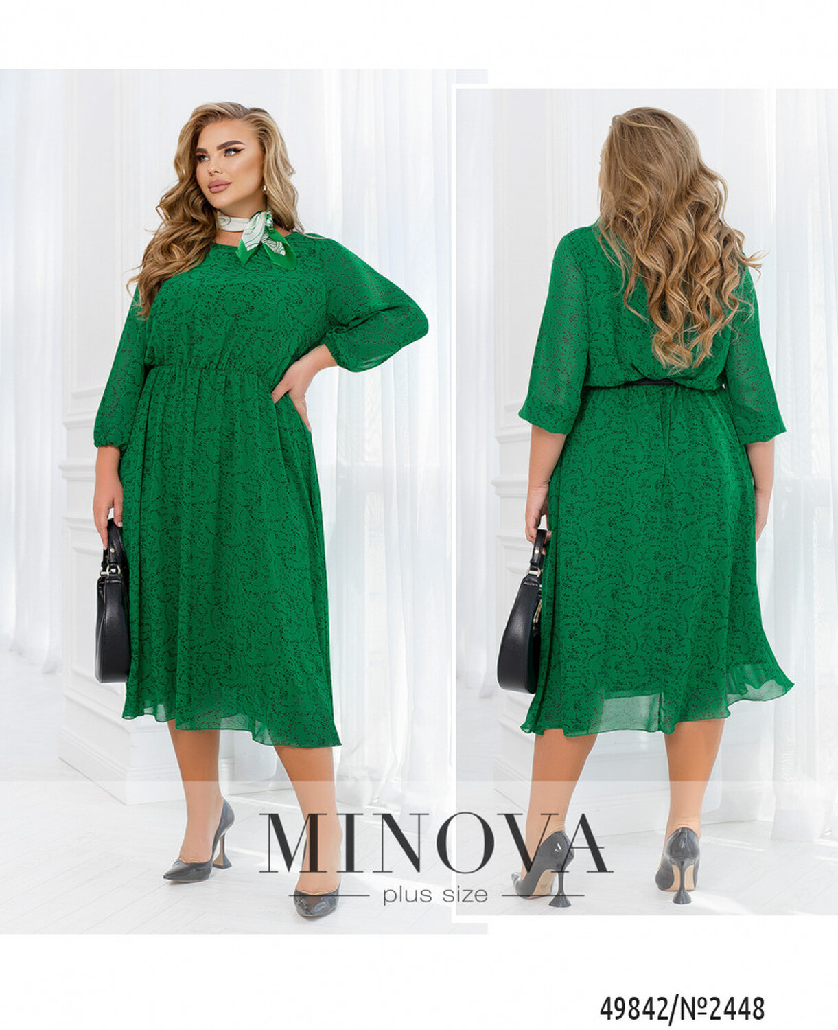 58-60 р-р: довжина сукні 122см, довжина рукава від плечового шва 49см, обхват рукава 44см, ОГ - 124/128см, ОТ -96/134см, OC -178см.