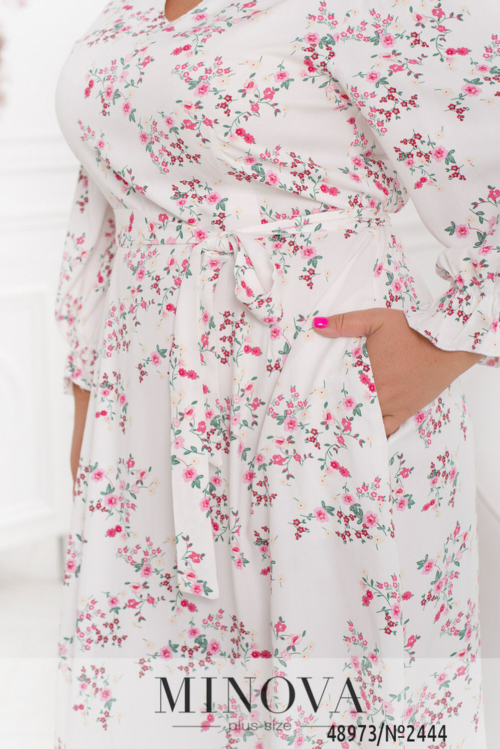 Представляємо чудову сукню для Вашого гардеробу! Ця сукня зроблена з котону та має елегантну довжину міді. Виріз V-форми підкреслює лінію декольте та додає привабливості. Рукава довжиною 7/8 з резинкою, яка створює невеликі рюшики додають романтичного настрою і підкреслюють жіночність образу. А особливу увагу заслуговує відрізна талія, з вертикальними виточками, яка вигідно підкреслить вашу фігуру. Якщо ви бажаєте ще більше підкреслити свою талію, в комплекті йде текстильний пояс. Ця сукня має не тільки прекрасний вигляд, але й практичність завдяки не великим кишеням в бічним кишенькам.