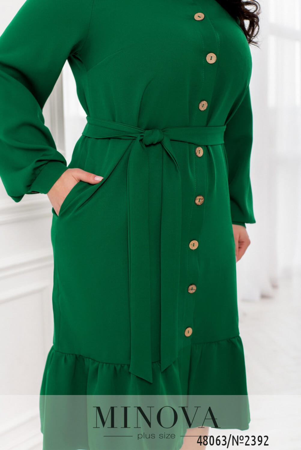 Легка та ніжна сукня А-силуету в монохромних відтінках. Ідеальний варіант для святкової вечері або ж для офісу. Передня частина виконана за допомогою планки з функціональними ґудзиками, по боках є врізні кишені. Сукня має довгі рукави на манжетах, які фіксуються ґудзиком. Поділ відрізний з елегантним воланом, який додає легкості та невагомості. Талію можна підкреслити за допомогою текстильного пояску в тон.
