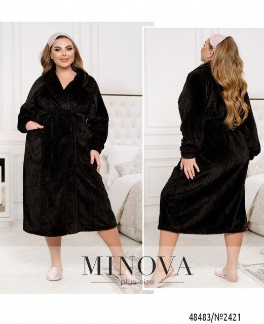 66-68 р-р: довжина халата 124см, довжина рукава від горловини 79см, обхват рукава 54см, ОГ - 156см, ОТ -156см, OC -160см.