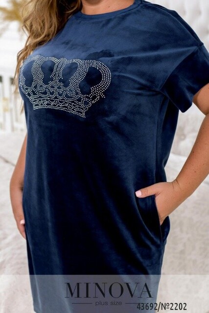 Елегантна домашня сукня без застібок, рукави без манжетів, по сторонам - кишені в шві. На грудях - великий декоративний візерунок зі страз.