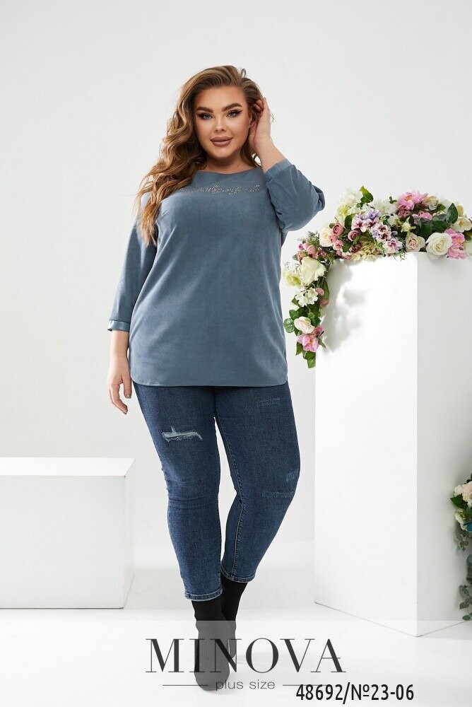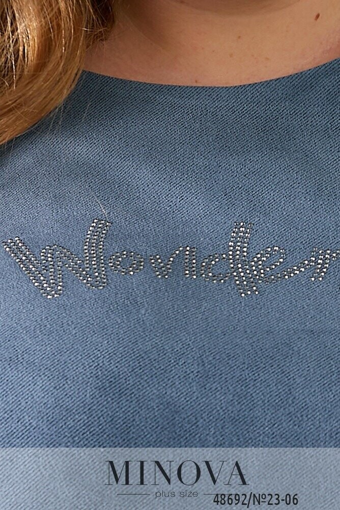 Замшева кофтинка, яка буде легко комбінуватись в базових образах. Кофта доповнена вставками у вигляді екошкіри по бокових швах, а також на рукавах у вигляді манжету. Низ кофтинки заокруглено, а на грудях декоративний надпис "Wonderful" у вигляді страз.