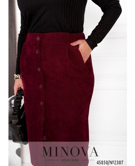 Актуальна вельветова спідниця-міді підійде для прогулянок і зустрічей з друзями, шопінг і вечірки. Модель без шльовок застібається на ряд гудзиків спереду, а також доповнена кишенями з боків і резинкою, вставленою ззаду по лінії талії.