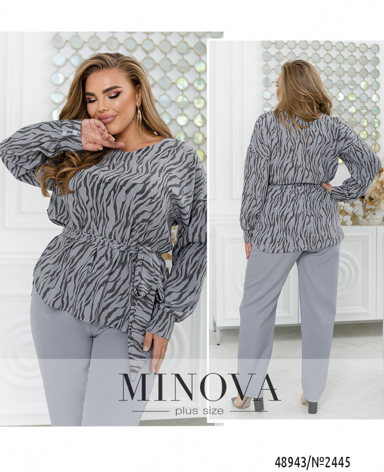 Ця прекрасна блуза оверсайз крою не залишить байдужою жодну жінку! Вона має подовжену спинку та закруглений поділ, що додає нотку жіночності та елегантності. Розрізи по боках додають легкості та повітряності до образу. Горловина у формі "V" створює візуальний ефект витягнутої шиї та робить декольте більш елегантним. У комплекті з сукнею йде пояс, який можна використати для підкреслення талії та створення затишного облягаючого силуету, або залишити блузу прямою для більш розслабленого образу.