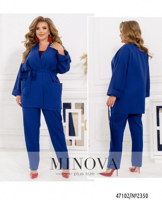 62-64 р-р: довжина брюк по внутрішньому шву 75см, довжина брюк по зовнішньому шву з урахуванням пояса 107см, ОТ - 96-120см, ОБ - 134см.