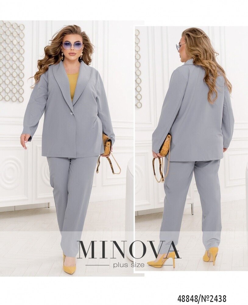 Класичний офісний костюм - ідеальний варіант для формальних подій та робочих зустрічей, а ще він легко поєднується в образах спортивного шику та комбінується в повсякденних луках. Піджак виконаний з високоякісної тканини та має витончений крій, який підкреслює фігуру. Він має класичний дизайн без кишень і доповнений одним ґудзиком по центру, що додає стилю та завершеності образу. Брюки прямого крою з резинкою на талії дуже зручні та комфортні