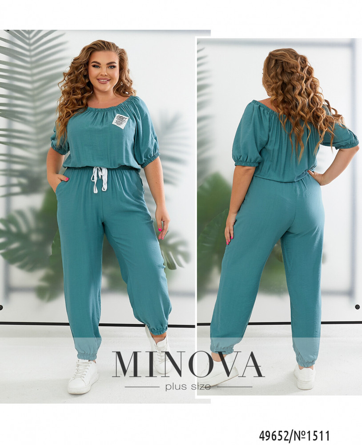 Новий комбінезон вільного крою, виготовлений з тканини, що має легкість і надає комфорт. На грудях розташована декоративна нашивка. Він має глибокий круглий виріз навколо горловини, а рукава зібрані гумкою і мають драпірування на поясі. Штани мають високу посадку з кишенями та манжети внизу. Цей комбінезон можна носити як з босоніжками на високих підборах, так і з кросівками, що надає йому багато варіантів стилізації. Він точно стане чудовим доповненням вашого гардероба!