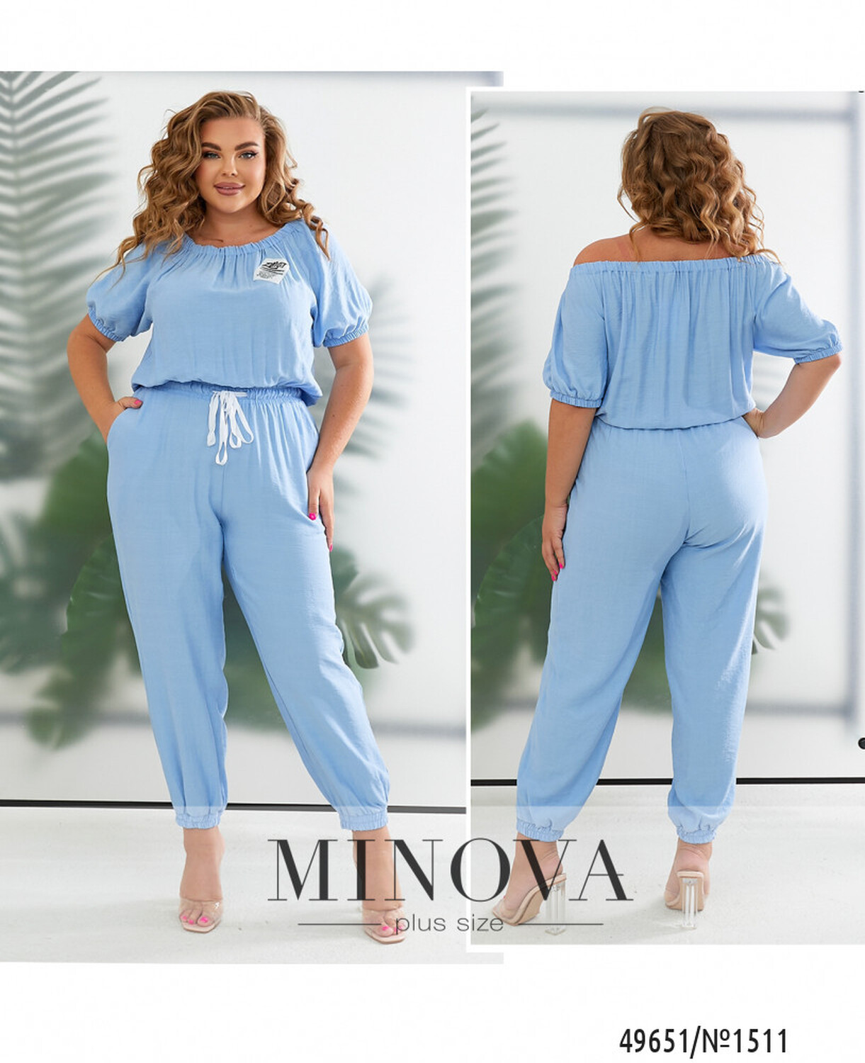 50-52 р-р: загальна довжина комбінезона 145см, довжина рукава від горловини 34см, обхват рукава 40см, ОГ - 116см, довжина брюк по зовнішньому шву з урахуванням пояса 100см, довжина брюк комбінезона по внутрішньому шву 72см, ОТ - 74-100см, OC - 116см.