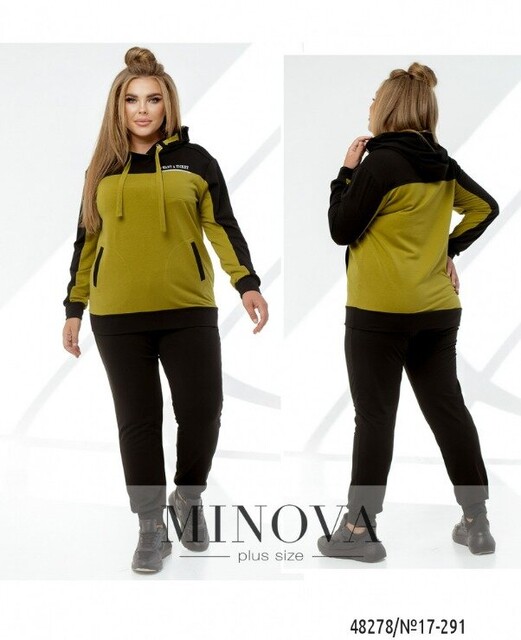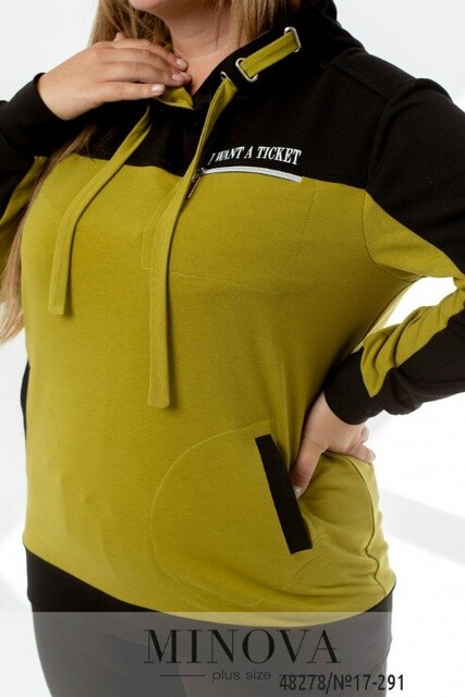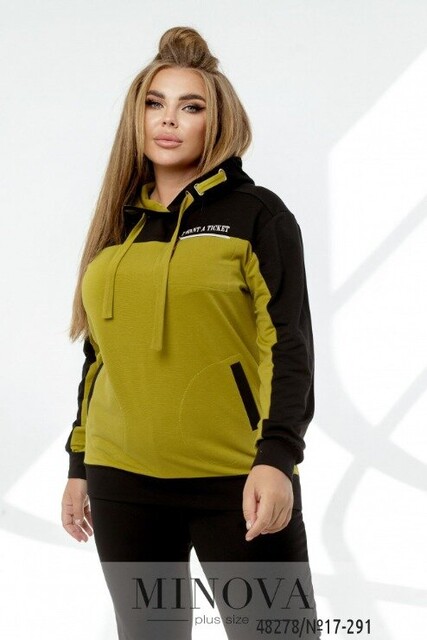 Спортивний костюм, який підкреслить вашу індивідуальність, а також додасть вам настрою. Яскрава контрастна кофта з капюшоном, через який пропущено шнурок із люверсами. Рукави повної довжини на манжеті та бічними діагональними кишенями. На грудях імітація кишені з блискавкою та термонаклейка. Штани спортивного крою з гумкою на талії та манжетами. З боків є врізні кишені.