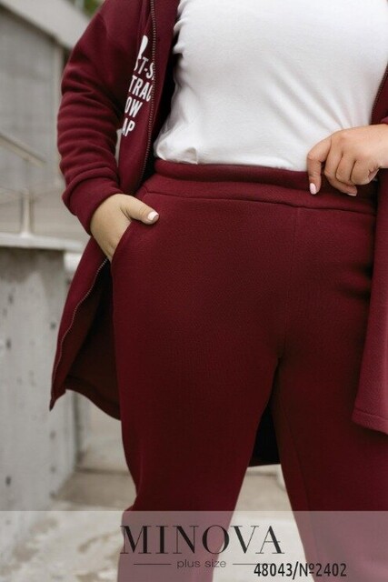 56-58 р-р: довжина брюк по внутрішньому шву 77см, довжина брюк по зовнішньому шву з урахуванням пояса 107см, ОТ - 86-116см, OC -122см.