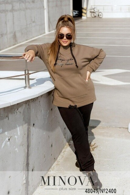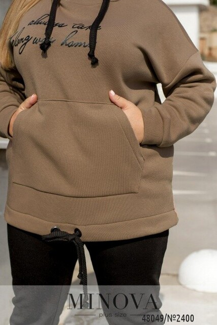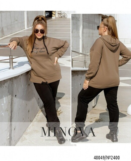 Теплий костюм двійка, який виготовлений з трьохнитки, зробить навіть найпрохолодніші дні комфортними для вас. Костюм складається з брюк-джогерів на резинці з врізними кишенями. Низ штанів на манжеті, а одного боку розташована термоналіпкою.