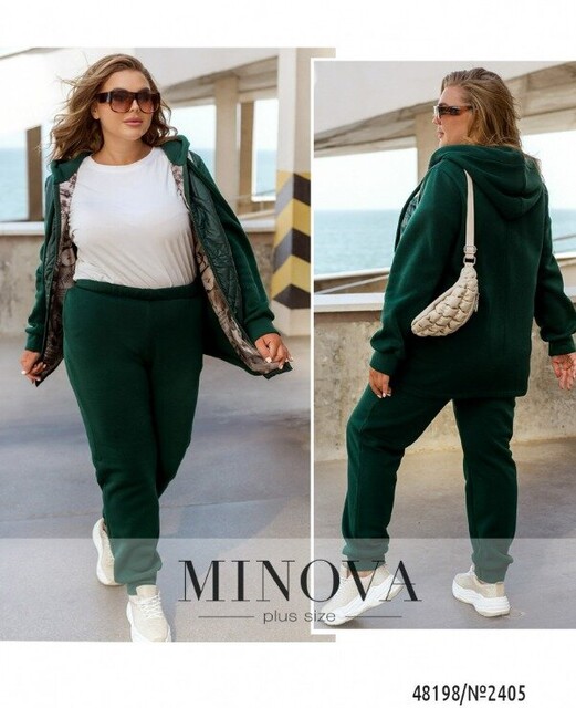 Універсальний костюм, який зігріє вас в прохолодну погоду, костюм складається із теплої кофти із трьохнитки на флісі, яка комбінована з плащівкою по передній частині виробу. Під плащівкою розміщена тонка підкладка. А по боках в основі ми додали кишені. Виріб, доповнений капюшоном зі шнурком та люверсами. Рукава довгі та доповнені манжетами. Брюки з гумкою на талії та бічними кишенями. Внизу штани на манжетах. Універсальний варіант для примхливої осінньої погоди для того, щоб бути завжди в теплі.
