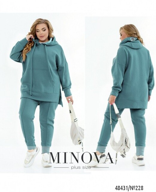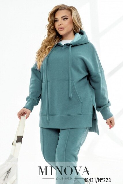 Костюм, в який ви точно закохаєтесь з першого погляду, адже виріб має дуже стильний фасон, а ще неймовірно приємну та якісну тканину тринитка на флісі. В комплекті подовжене худі оверсайз крою зі спущеним плечем та рукавами з високим манжетом. Худі доповнено капюшоном зі шнурком та люверсами, а також об'ємною кишенею кенгуру. По боках є невеликі бічні розрізи, а також ми зробили виріб по спинці трохи довшим. Штани з люверсами та шнурком на талії та високими манжетами внизу виглядають дуже стильно та ідеально виглядають на фігурі. По боках є бічні кишені. Такий костюм буде доречно виглядати в будь-якому спортивно-повсякденному образі, а також можна стильно стилізувати кожен компонент окремо і зробити образ більш розслабленим, комбінуючи, наприклад, худі з джинсами.
