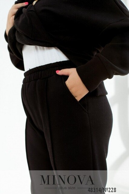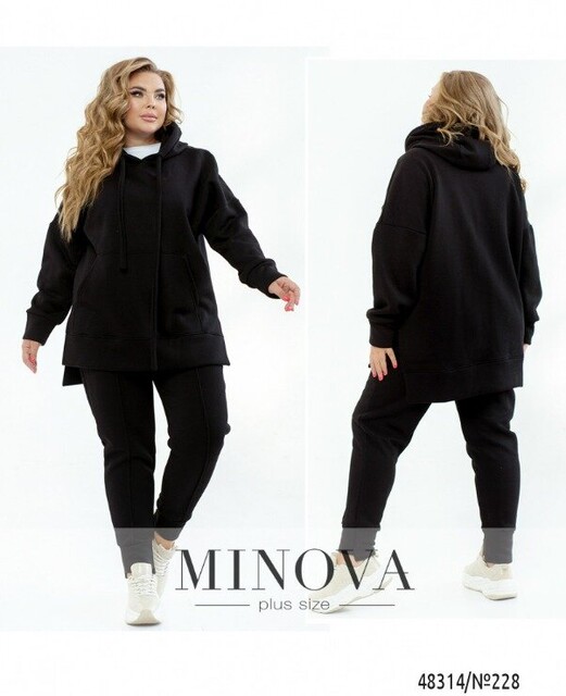Костюм, в який ви точно закохаєтесь з першого погляду, адже виріб має дуже стильний фасон, а ще неймовірно приємну та якісну тканину тринитка на флісі. В комплекті подовжене худі оверсайз крою зі спущеним плечем та рукавами з високим манжетом. Худі доповнено капюшоном зі шнурком та люверсами, а також об'ємною кишенею кенгуру. По боках є невеликі бічні розрізи, а також ми зробили виріб по спинці трохи довшим. Штани з люверсами та шнурком на талії та високими манжетами внизу виглядають дуже стильно та ідеально виглядають на фігурі. По боках є бічні кишені. Такий костюм буде доречно виглядати в будь-якому спортивно-повсякденному образі, а також можна стильно стилізувати кожен компонент окремо і зробити образ більш розслабленим, комбінуючи, наприклад, худі з джинсами.