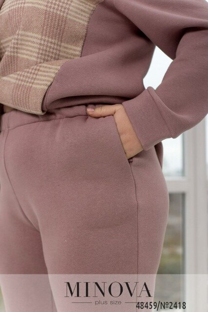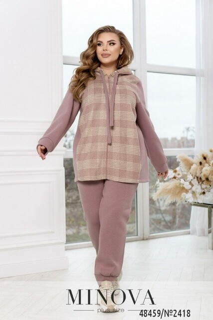 Повсякденний костюм у спортивному стилі, який виготовлений з трьохнитки на флісі, преміальної якості, яка не кошлатиться. Кофта складається з комбінації принтованої тканини в клітинку, а також однотонної основи. Кофта доповнена капюшоном зі шнурком та люверсами, а також бічними кишенями. Рукава довгі з манжетами. Штани з гумкою на талії та бічними кишенями. Внизу штани на манжетах. В такому костюмі Вам однозначно буде тепло та затишно.
