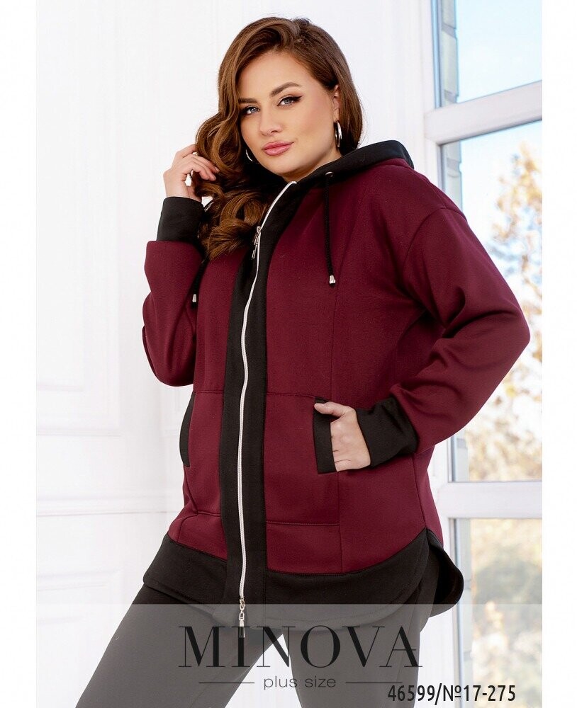 Контрастний спортивний костюм - це універсальний і зручний комплект, який може зігріти в прохолодний день і допоможе створити актуальний осінній образ. Лаконічні однотонні штани на резинці з кишенями і манжетами ідеально доповнює яскрава подовжена кофта з капюшоном, кишенями, змійкою спереду і закругленими кутами з боків.